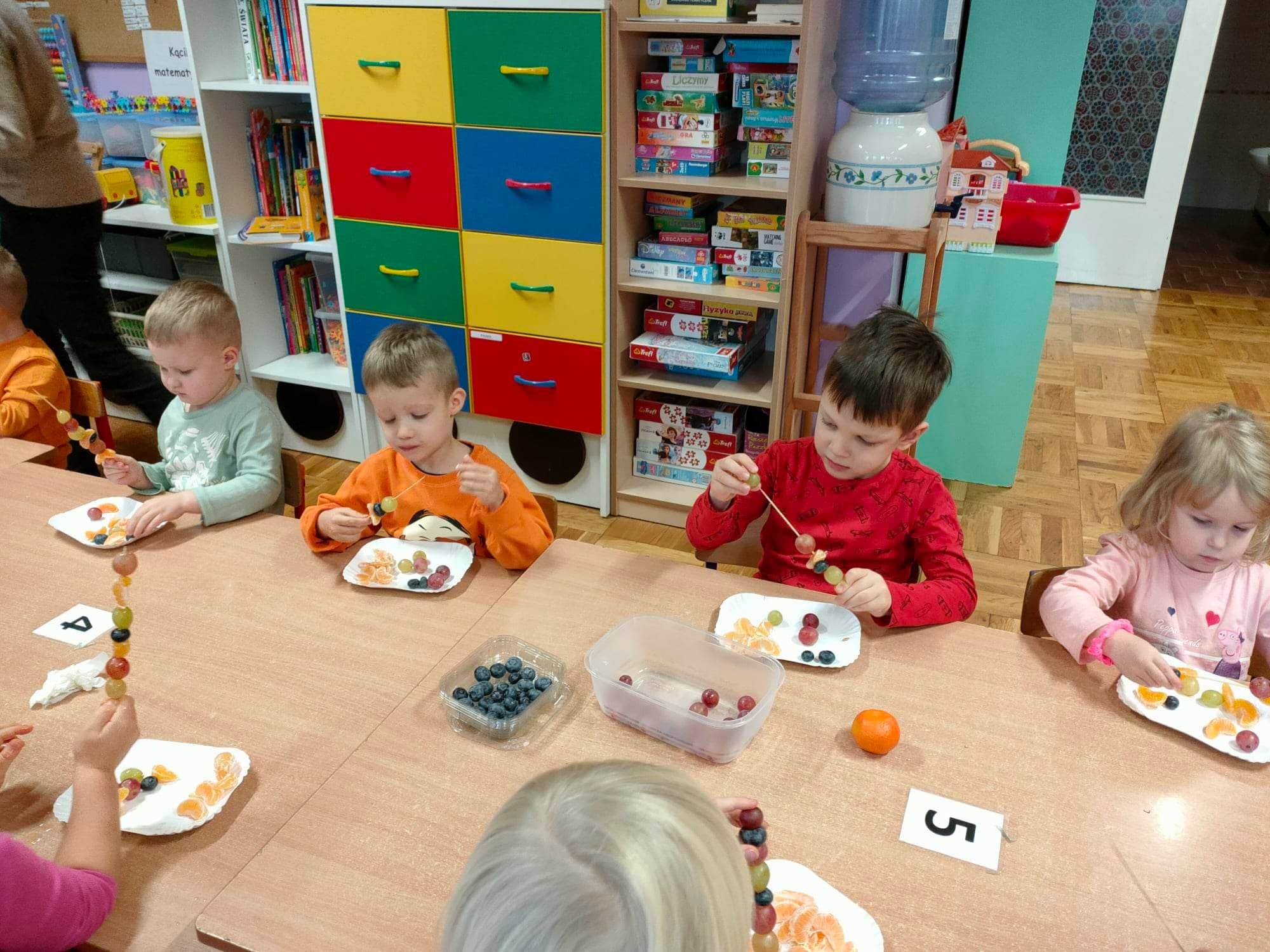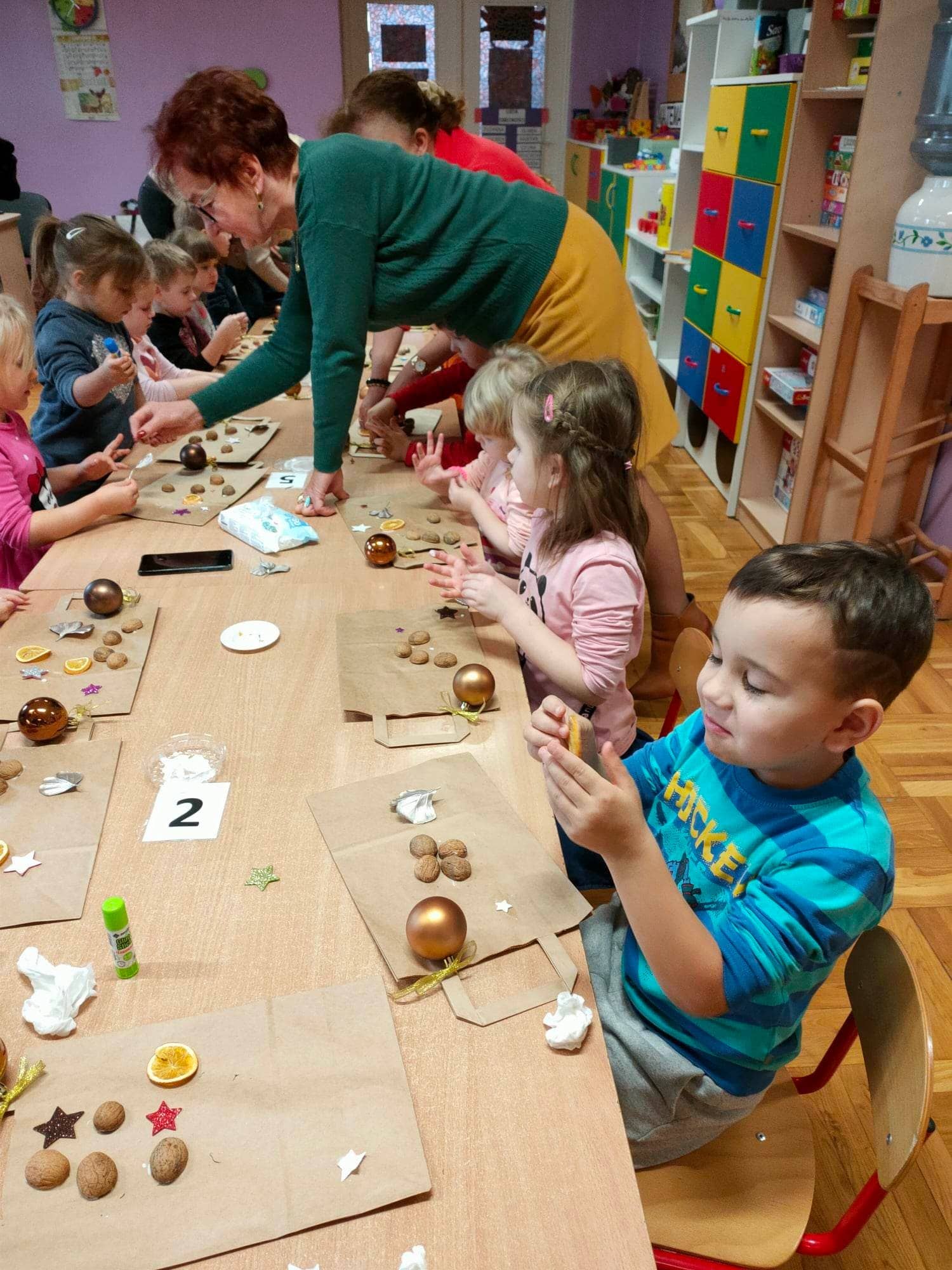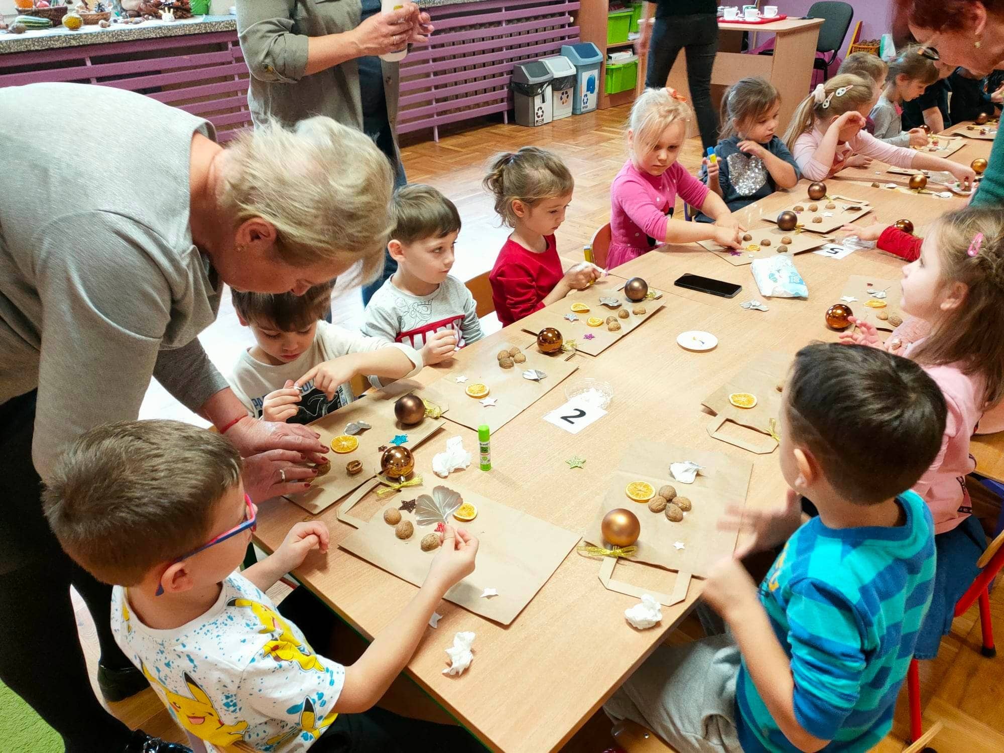 Dzieci pod okiem Pań ozdobiły świąteczne torebki oaz przygotowały owocowe szaszłyki. Gospodynie poczęstowały dzieci swoimi wypiekami. Serdecznie dziękujemy 🙂