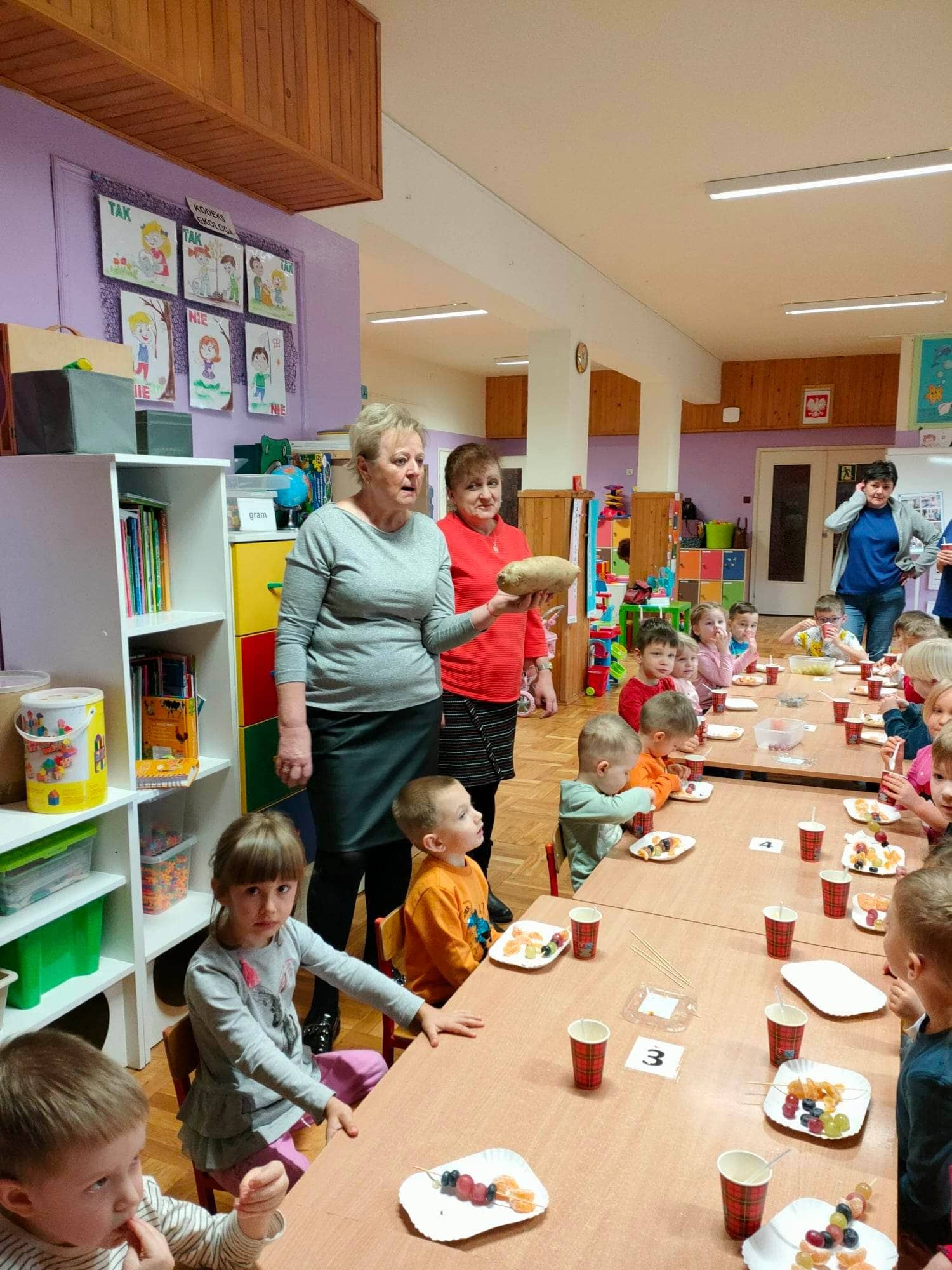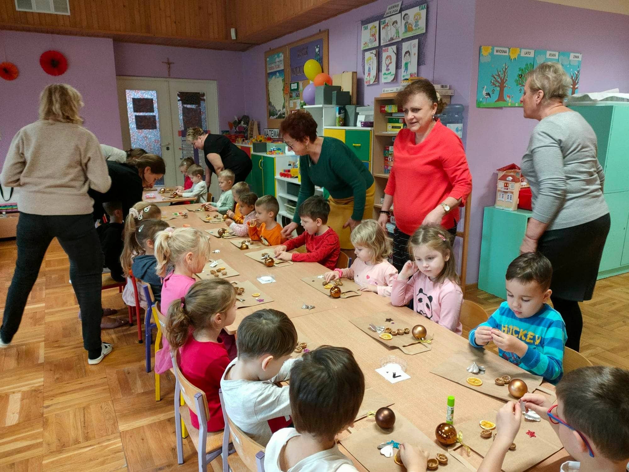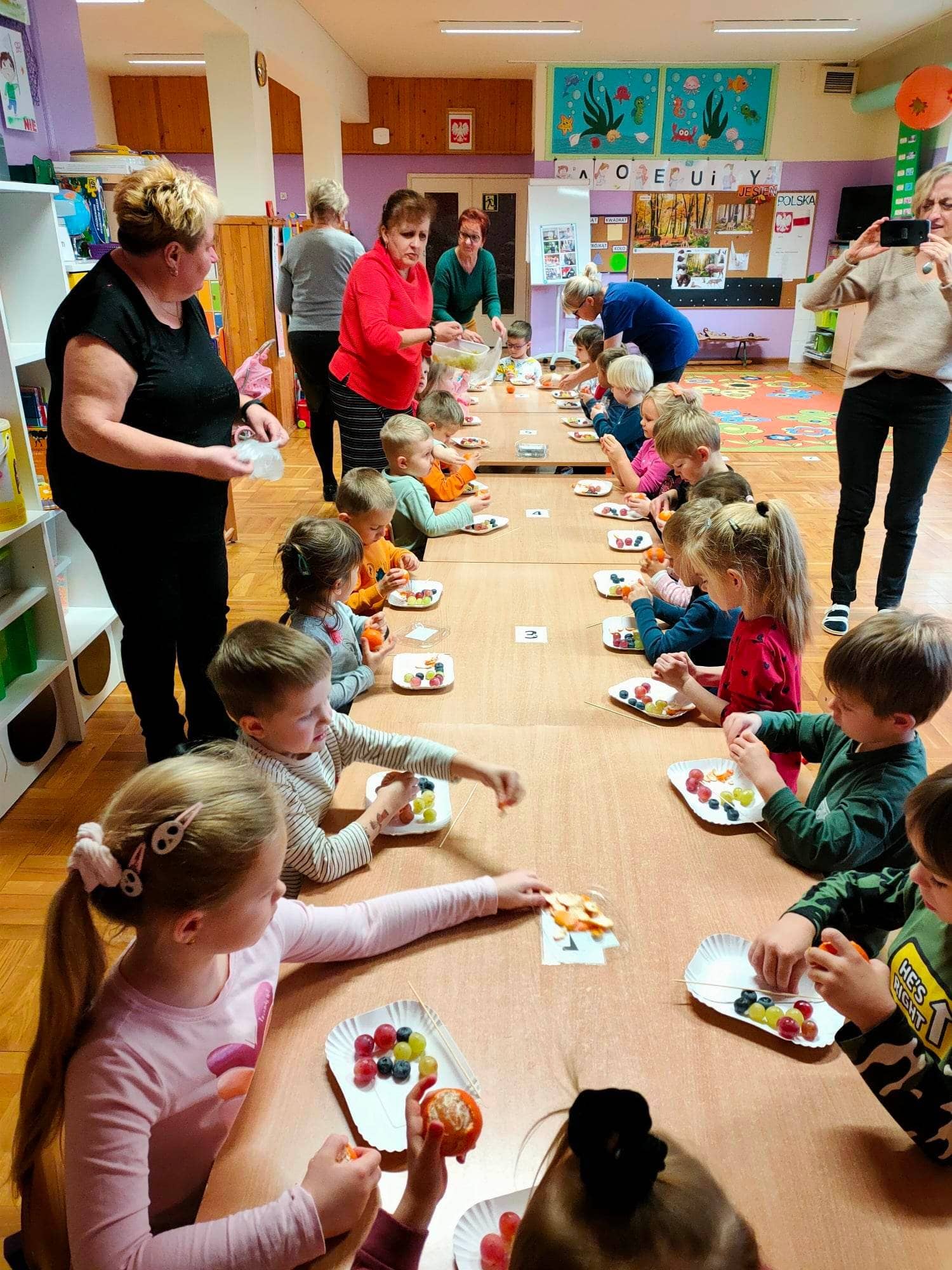 Dzieci pod okiem Pań ozdobiły świąteczne torebki oaz przygotowały owocowe szaszłyki. Gospodynie poczęstowały dzieci swoimi wypiekami. Serdecznie dziękujemy 🙂