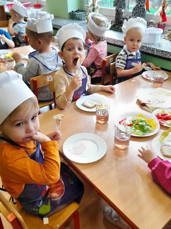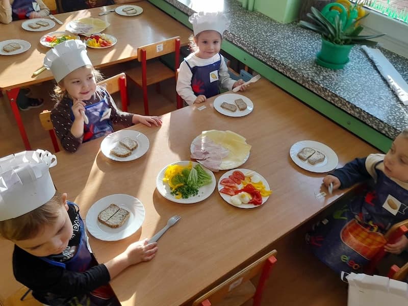 8 listopada obchodzimy Europejski Dzień Zdrowej Żywności i Gotowania tego dnia dzieci z najmlodszej grupy obchodziły Dzień Zdrowego Śniadania. Nasze maluszki samodzielnie przygotowały śniadania. Zrobione potrawy wszystkim bardzo smakowały. To było interesujące doświadczenie i świetna zabawa dla dzieci, dzięki której najmłodsi nauczyli się jak ważne jest codzienne, zdrowe śniadanie.